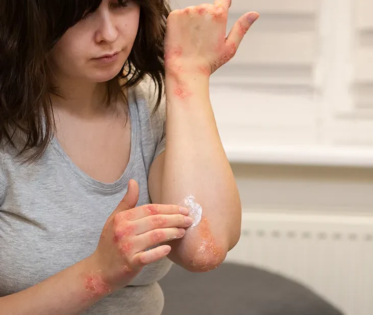 - Cilt Kuruluğu ve Pullu Döküntüler: Cilt genellikle kuru, çatlamış ve pullu olur. Bu durum, atopik dermatitli bireylerde sıkça karşılaşılan bir belirtidir.
