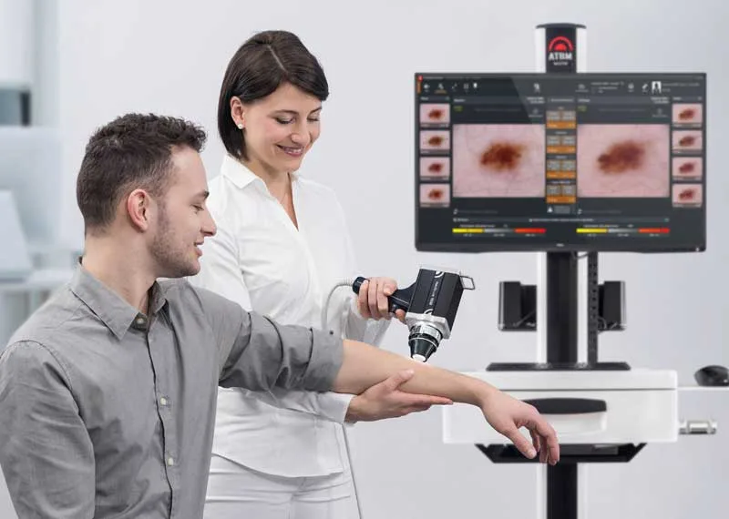 Dermoskopi: Deri lezyonlarının daha ayrıntılı bir şekilde incelenmesi için kullanılan bir görüntüleme tekniğidir. Dermoskop, cilt yüzeyindeki lekeleri daha iyi görmek için kullanılır.