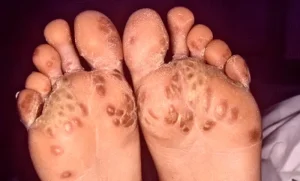 Reiter sendromu bazen ciltte döküntülere yol açabilir. Bu döküntüler genellikle ellerde, ayaklarda veya vücudun diğer bölgelerinde görülebilir. Bazen siğil benzeri lezyonlar da ortaya çıkabilir.