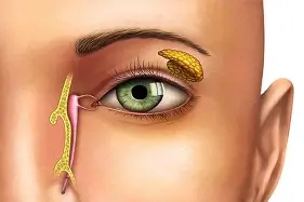 - Gözyaşı bezleri su, tuz, protein gibi maddeleri üretir ve göz yüzeyini nemli tutar.